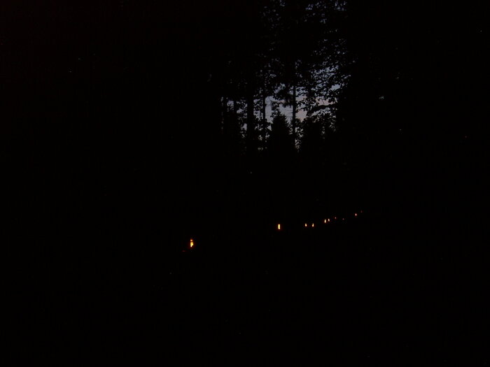 20h45, les premiers curieux arrivent. Ils sont une cinquantaine à avoir répondu à l'appel du WWF Fribourg. Plus tard dans la nuit, ils seront heureux de partager leurs impressions nocturnes silencieuses autour d'un beau feu et d'une bonne tasse de thé chaud !!! La prochaine... car prochaine il y aura sûrement vu le succès et l'enthousiasme des organisateurs, aura, on l'espère, autant de succès, et sera un peu plus silencieuse. Merci à tous les bénévoles, sans qui cette expérience n'aurait pas été possible !
